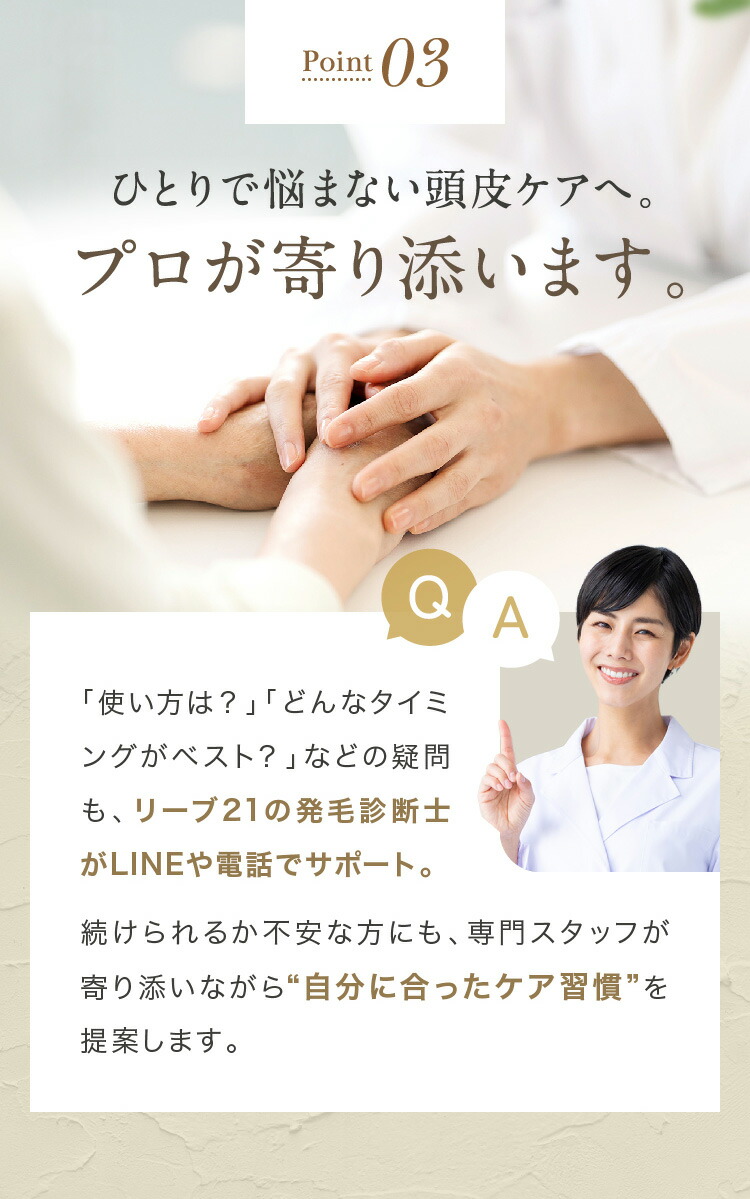 ※POINT:マッサージすることによって、血液やリンパ液の循環を促し、新陳代謝を高め、頭皮・毛髪の成長を進めます